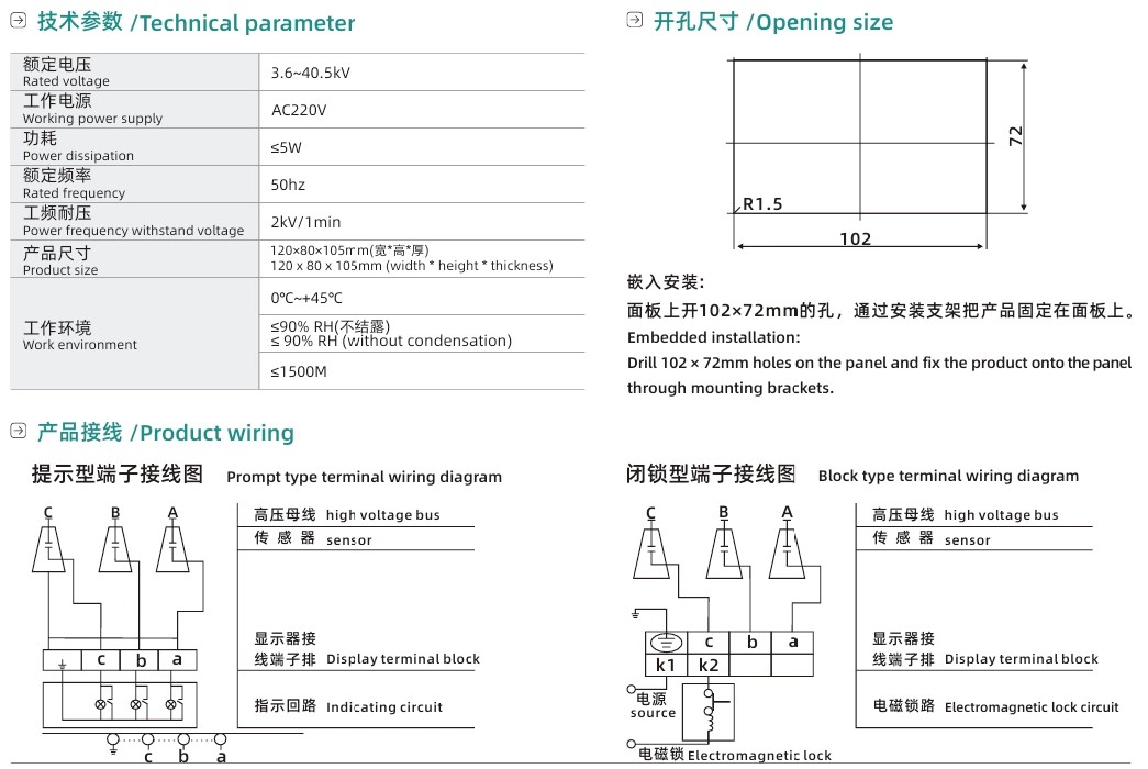 Denna visningsenhet är designad för installation på nyckelpunkter inom inomhuselektriska system där tydlig strömtillstånd är viktigt. Den är kompatibel med ett brett utbud av högspänningsdistributionsutrustning, inklusive: